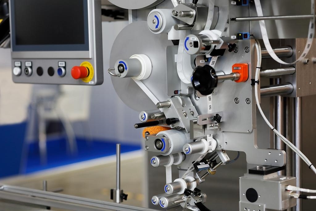 The labeling machine adopts a modular design, allowing it to meet different bottle types, labeling formats, and combination labeling requirements. The rotary bottle tray of the labeling machine is controlled by servo positioning, enabling precise labeling positioning for different bottle types using methods such as vision positioning, sensor positioning, and bottle bottom groove positioning. The labeling machine can be equipped with different labeling stations, including hot melt adhesive labeling stations, pressure-sensitive adhesive labeling stations, and pre-coated adhesive labeling stations.